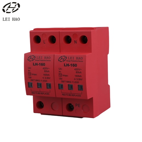 LeiHao T2 80kA-160kA 420VソーラーPV ACサージプロテクター高性能2ポール420V保護装置レッドライトニングプロテクション